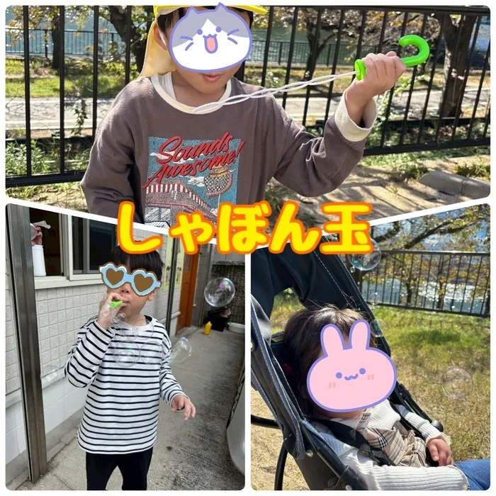 「きれーい!」とシャボン玉を追いかけたり、手を伸ばしたりしていました🫧