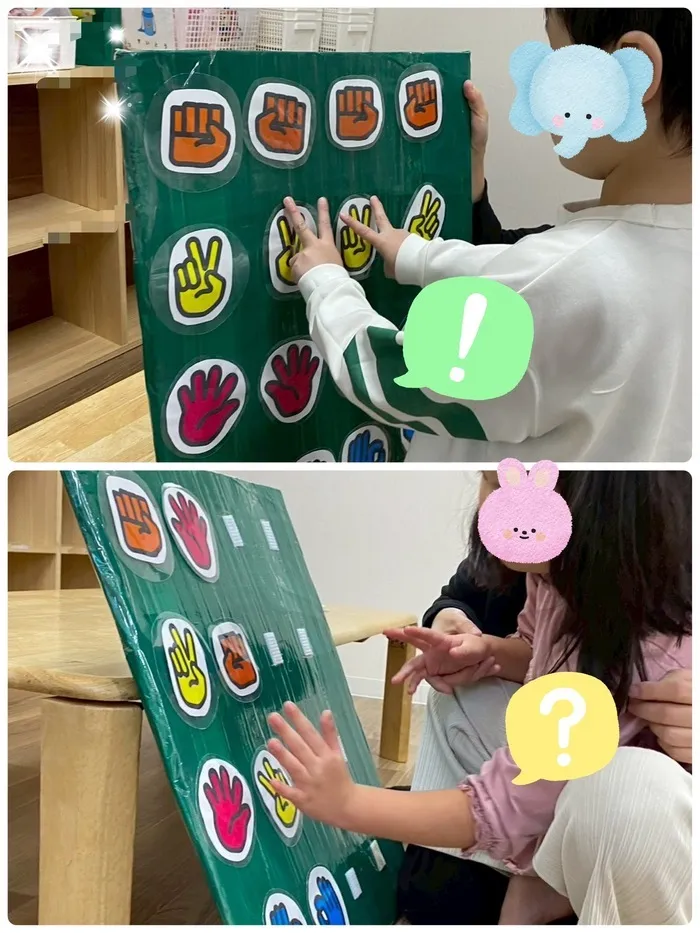 今日は、手のポーズ合わせ遊びをしました✋✊✌️👌
