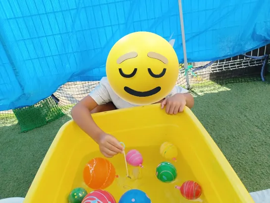 ヨーヨー釣りでは「あと少しでとれる!」と集中し、釣れたときには笑顔で大喜び!