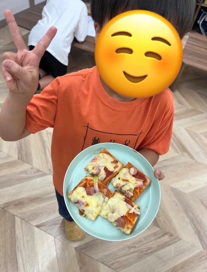 自分たちで決めた具材を前に、思い思いにトッピングを楽しむ子どもたちの姿がとても印象的です😌