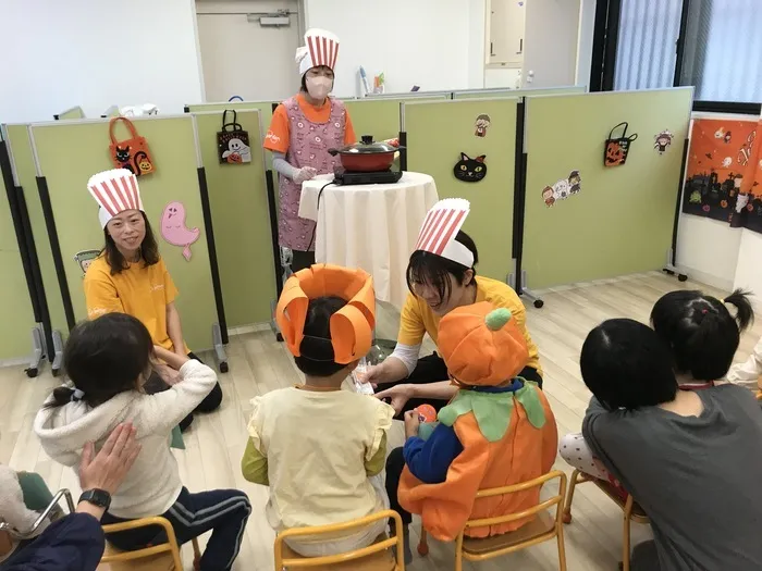 可愛らしく仮装して遊びに来てくれた子どもたちに、教室で初めての