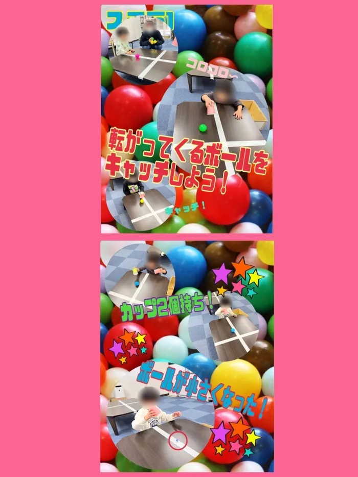 転がってくるボールを紙コップでキャッチ!タイミングよくボールを捕まえます⭐️