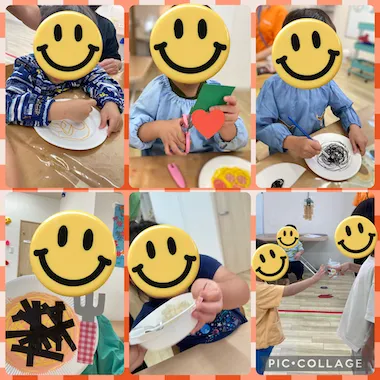 と伝える声があちらこちらから聞こえてきました。はじき絵後は、具材とフォークを貼って完成👏