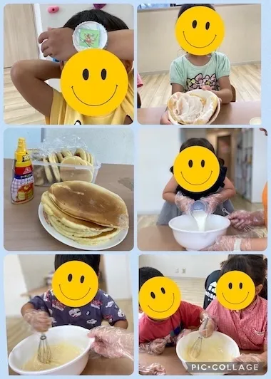 焼きたてのホットケーキにクリームを乗せて、みんなで美味しく食べました🥞