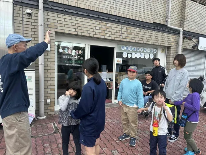 近くの小学校までみんなで歩いて避難しました。大きいお友だちが小さい子と手を繋いで「そこ上ったら危ないで」等声をそれぞれにかけながら歩いてくれていました!年齢が大きい子たちは、実際に水が迫って来ていたらどうしたらいいかな…ということも職員と一緒に話をしながら考えていました。