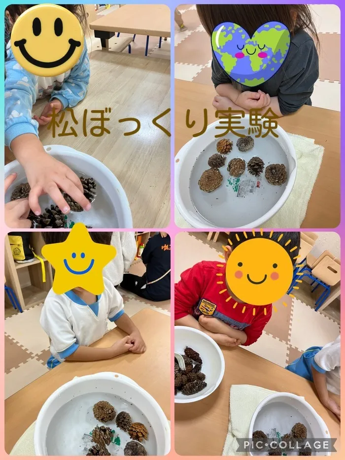 今日は松ぼっくり実験をしました!