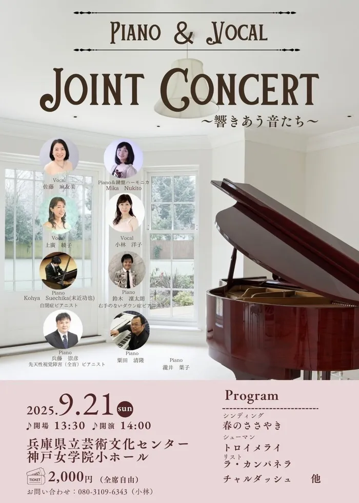 スタッフの 洋子先生、みか先生、マーミ先生も出演されるピアノと歌のコンサートがあります!