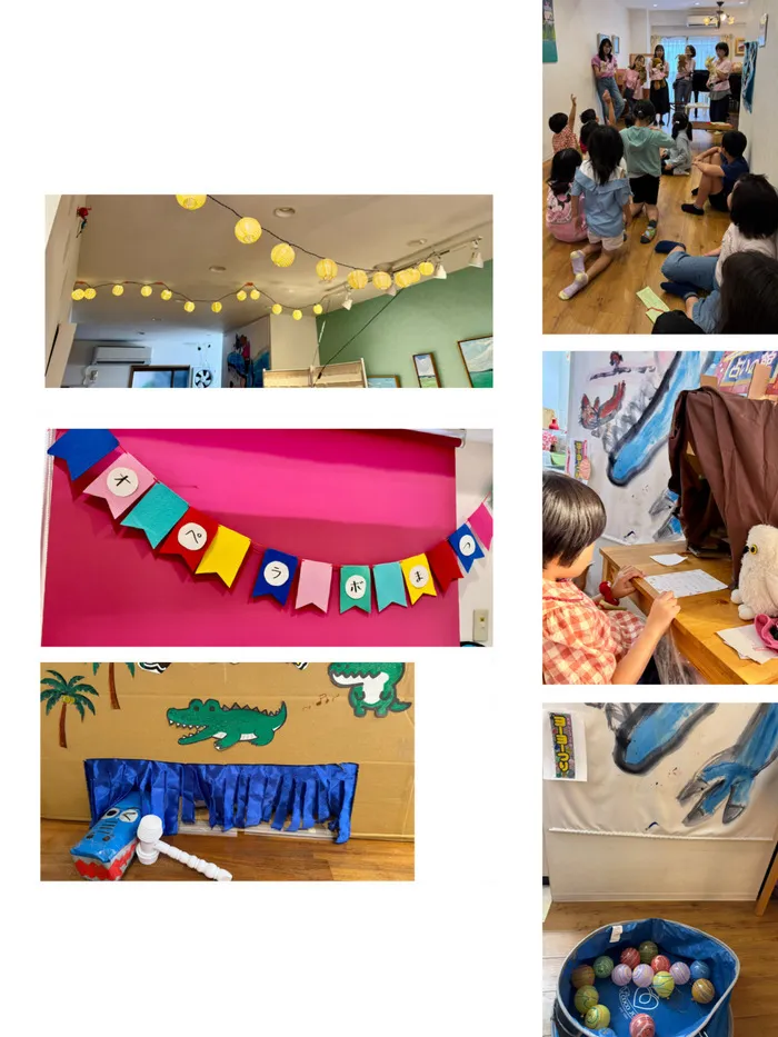 ワニワニパニック、「未来をのぞこう」占いの館、ヨーヨー釣り、ボール投げ的当て🎯、ミャクミャク腕輪作り、オペラボ劇団人形劇...etc