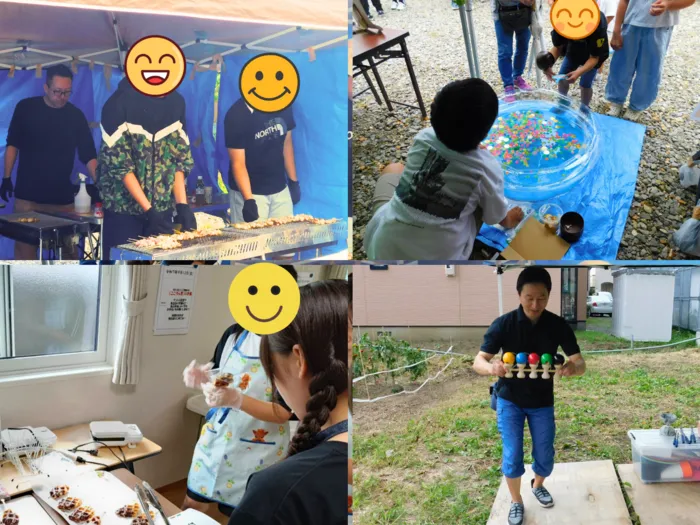 あいにくの天候の中でしたが、焼き鳥、クロッフル、パンロール、スーパーボールすくい、輪投げ、クジ引き、大道芸など子どもたちが準備してはりきってお客様をお迎えしました!