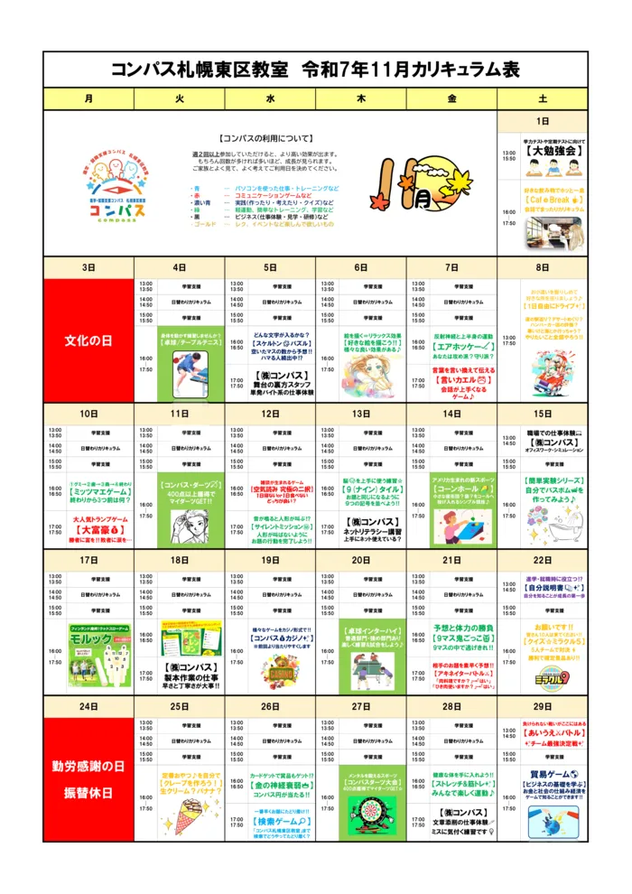 事業所名「コンパス札幌東区教室」 〒007-0850 北海道札幌市東区北50条東2丁目4-1