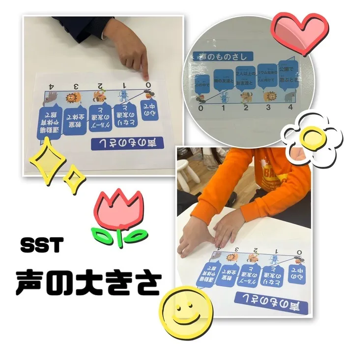 声の大きさを数字やイラストなどで「見える化」することで、声の調整が苦手な子どもが適切な音量に調節できるように練習できます!