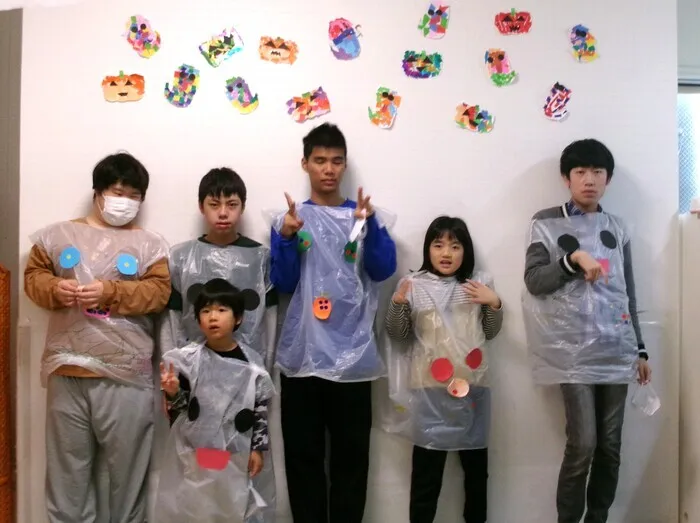 かぼちゃの服を着たり、猫耳やアフロをつけたりしました🤭