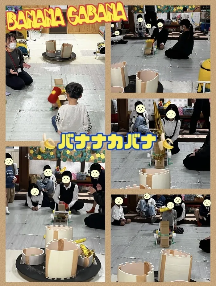 回転している筒にバナナが入ると得点獲得✨