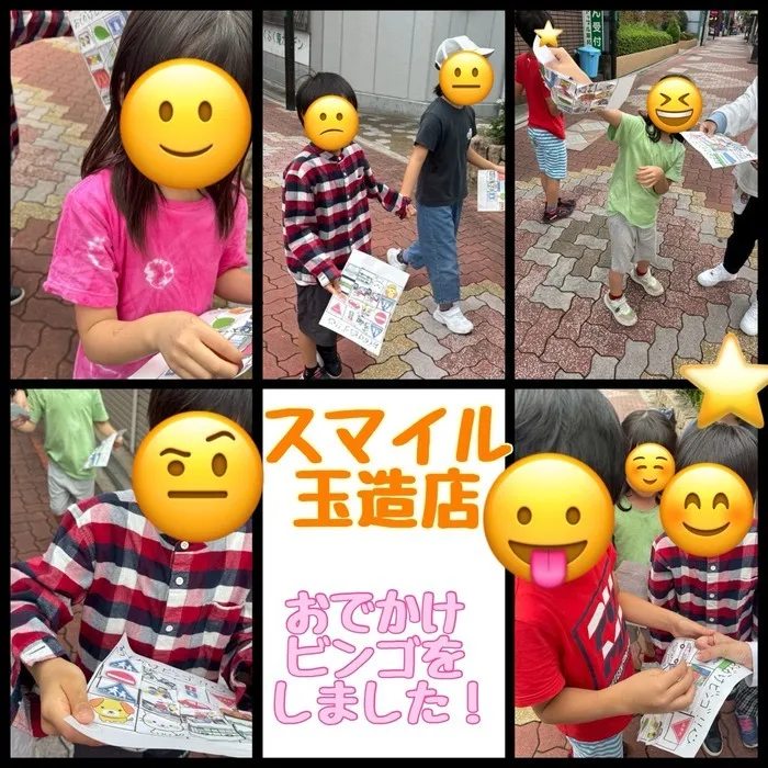 この日は自分たちでお外にあるものを選んで表に貼り、おでかけビンゴをしました♪