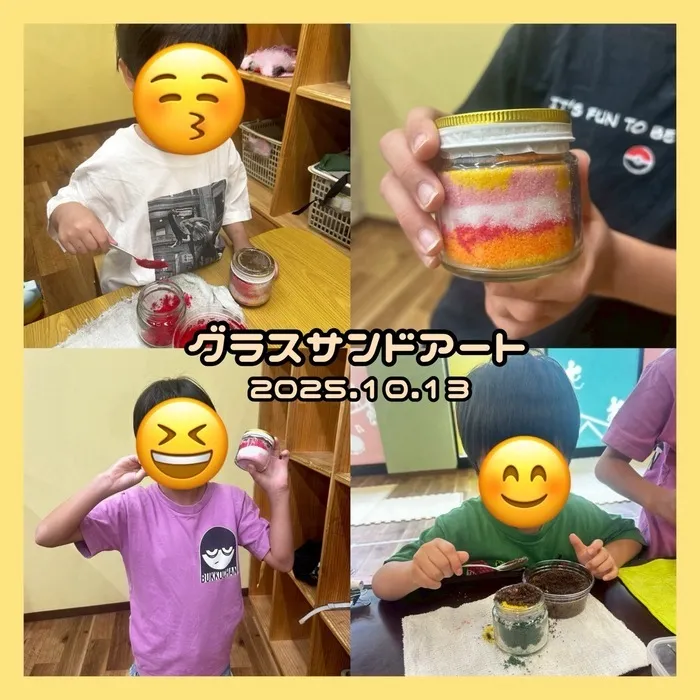 テーマを決めて作る子もいて、それぞれの個性があふれるカラーサンドアートができました🎶