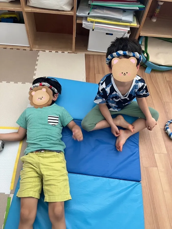 輪投げを出すと、投げて入れるよりも輪っかを頭にかぶって楽しんでいました🤣❤️