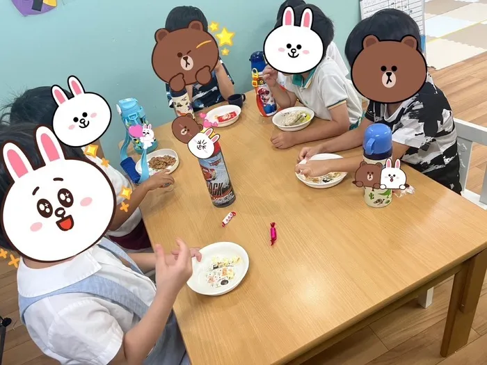 ひとつのテーブルで、4人が年長さんで、1人が年中さんでした。
