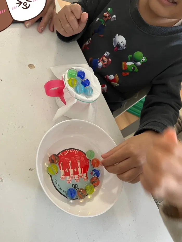 以前も紹介したことがある、ビー玉遊びを行いました☺