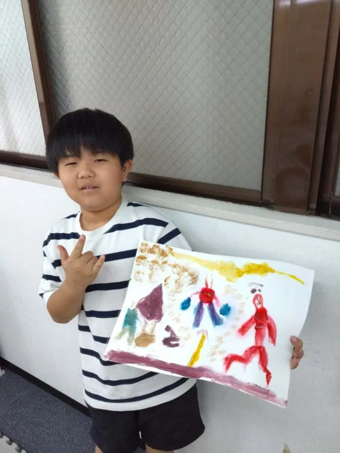 夏休みの楽しかった思い出を絵の具で表してみました**