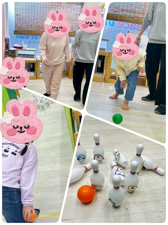 上からは投げないというルールで、まずはボールを下から転がす練習をしてみました✨