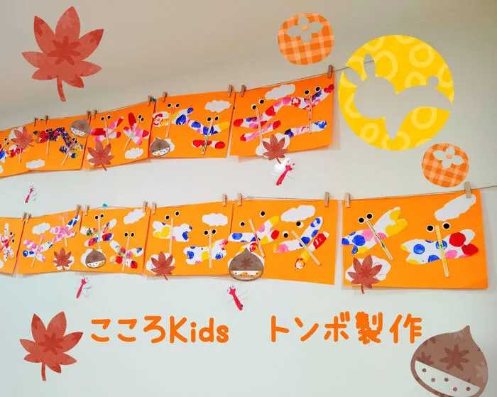 さて、こころkidsでは、デカルコマニーを用いてトンボ製作を行いました!