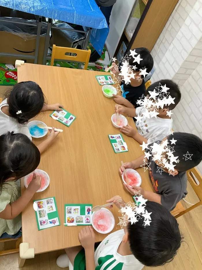 先日の夏祭りの最後を飾ったのは、みんなお待ちかねの【かき氷ブース】でした🎐