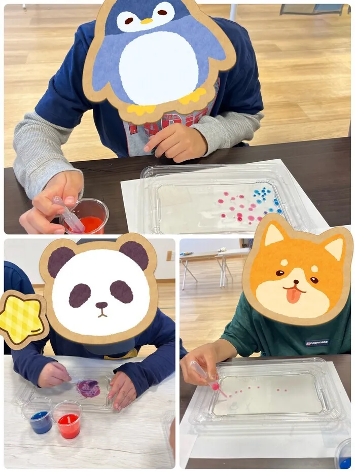 容器に油を入れてそこに色水をスポイトで落として模様を描いていくものです🎨
