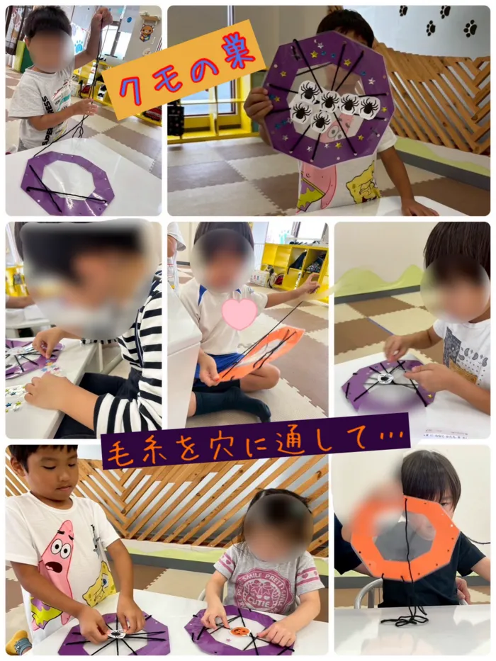 子どもたちは、どんな蜘蛛の巣にしようか想像を膨らませながら作っていました(^^♪