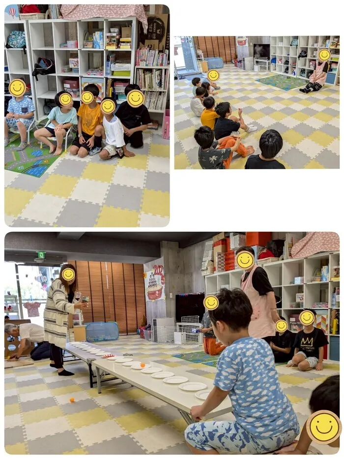長机の上に上皿を9枚並べて10枚目がゴール☆