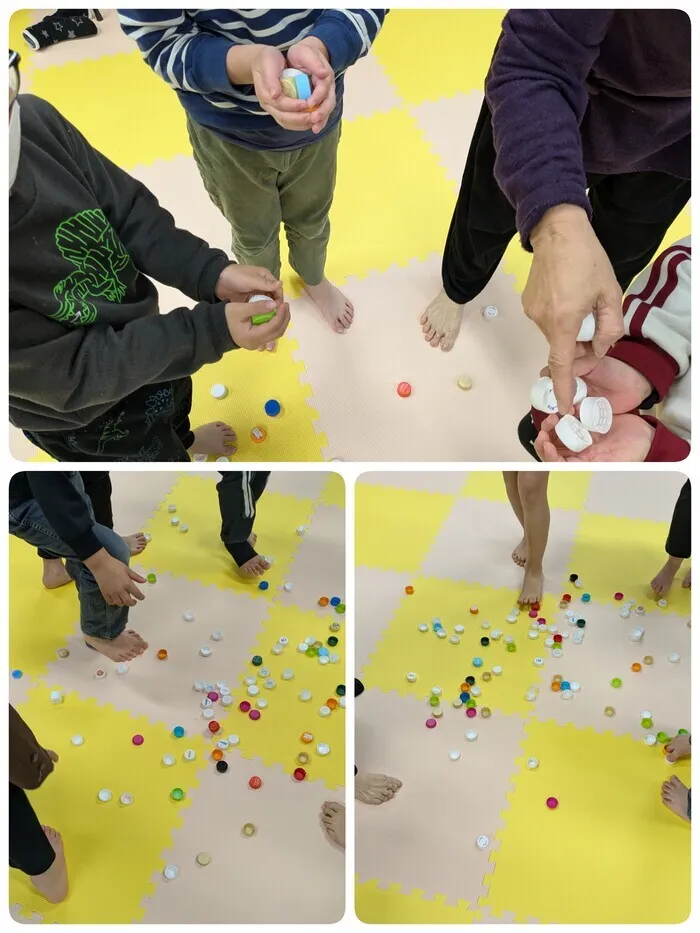 「ペットボトルのふたいくつとれるかな」をやりました。