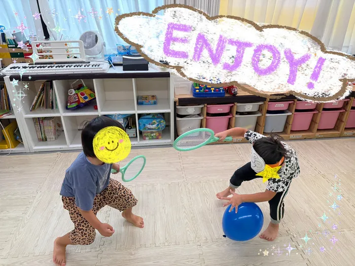 年中の男の子同士で自由遊び中に風船テニスを楽しんでいた時の様子です😊