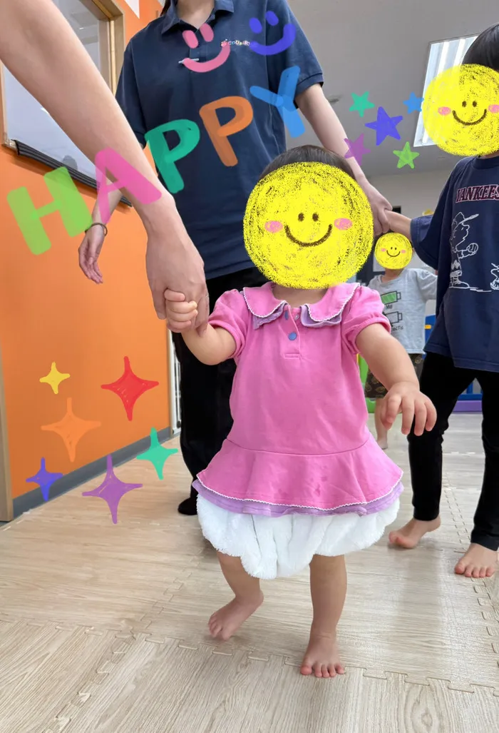 ご利用開始当初は抱っこで参加をする段階からのスタートでしたが、小集団活動にも少しずつ慣れてきて、最近はセラピストと一緒に少しずつ「歩く」などの活動に参加できるようになってきました。
