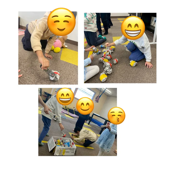 ボールをつかむ時は指先に力を入れ、箱に入れる時は指先の力を抜くという動きが上手なみんなでした✨