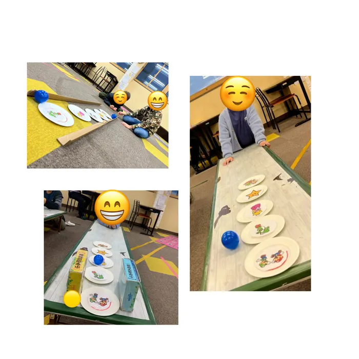 点数の書かれた紙皿を並べ、ボールを転がし点をとるという活動をしました♪