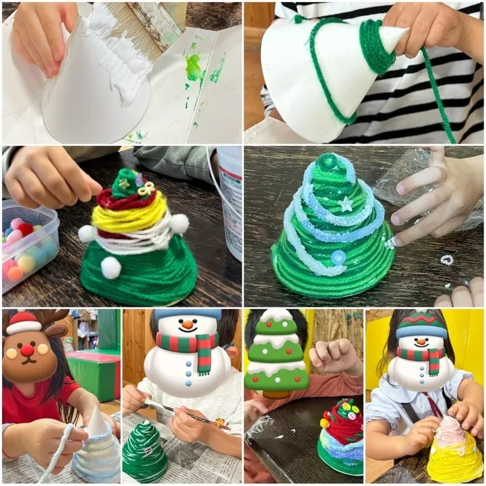 次回は、絵の具を混ぜて色鮮やかなツリーを