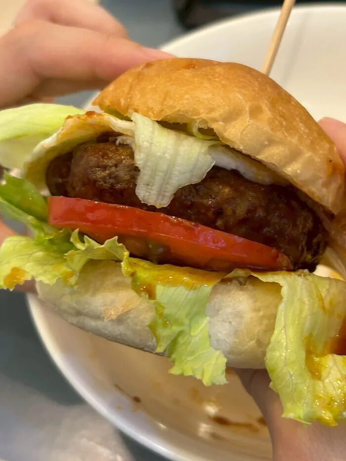 完成した後は自分の好きな具材を挟み、とても大きなハンバーガーを