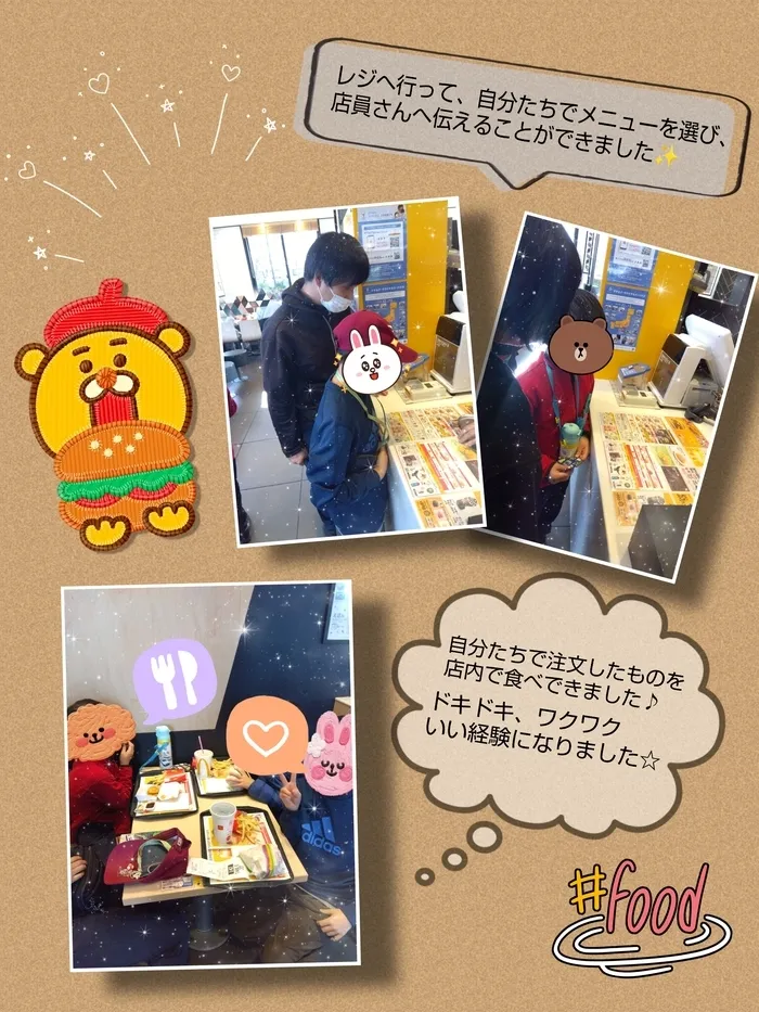 メニューを決め、店員さんへ注文し、お金を出すところまで可能な限り子どもたちの力で実践しました。