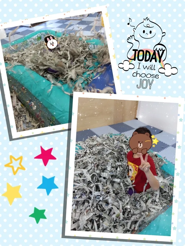 今日の運動療育では『新聞紙プール』を行いました!