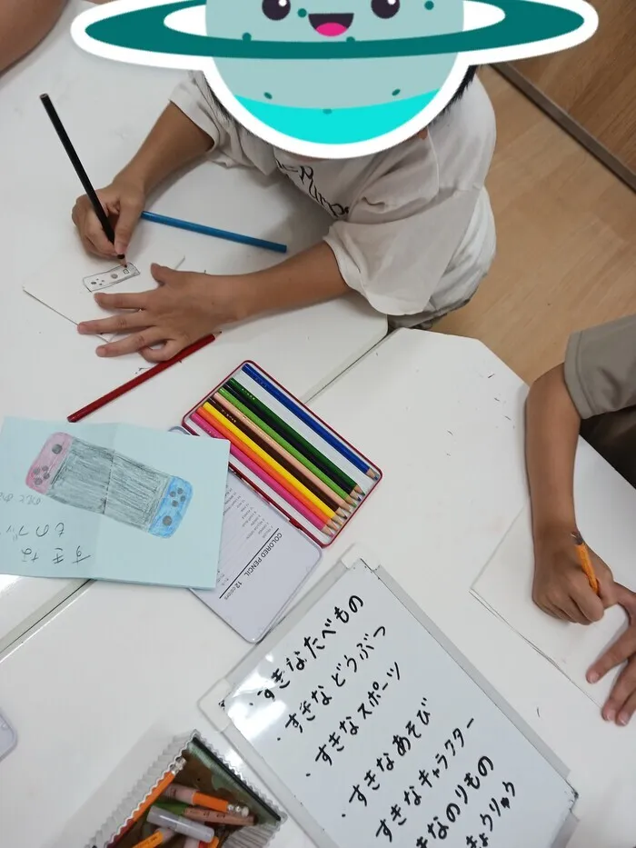 チャレンジ2では、「読書の秋」をテーマに、自分の好きなものを考えて絵本を作成しています。最初は、なかなか自分で思いつかい様子もありましたが、ゲームの話をすると