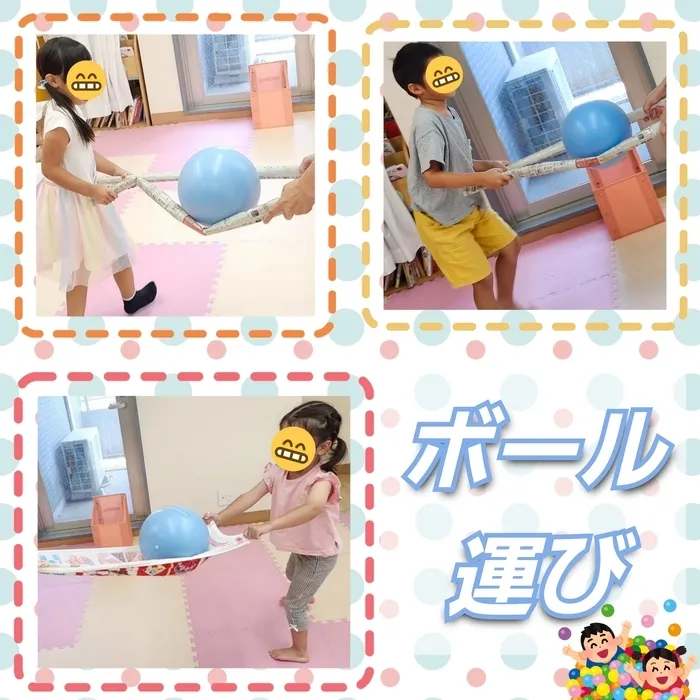 今回のプログラムは"ボール運び"で、お友だちや指導員と協力してタオルや新聞紙スティックを使ってボールを運ぶ遊びを行いました🎬