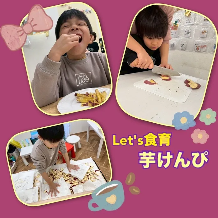 さつまいもを頑張って切ってくれたり、少し怖かったけど油の中にさつまいもを入れてくれたり、子供たちの頑張りを沢山見せて貰った日でした🍠