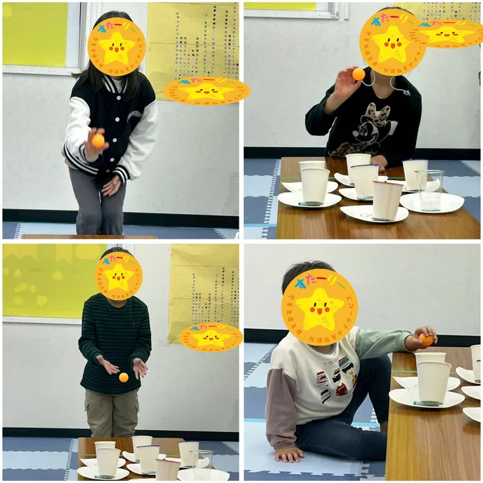 今日の集団活動はみんなでピンポン玉カップインをしました!!