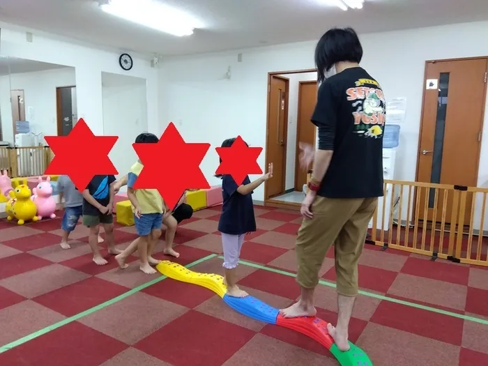 未就学のお子さんでは凸凹のブロック平均台を使い、体幹運動の要素も取り入れています!