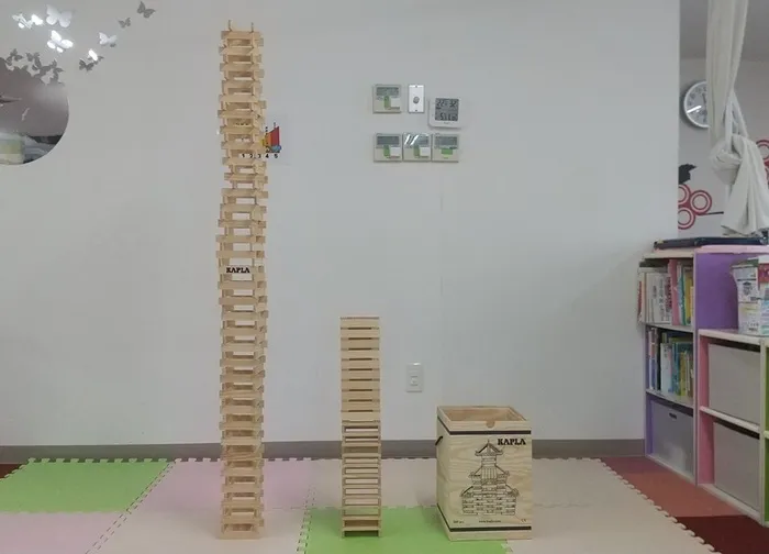 本日は一つずつ慎重に積み重ね、大人の身長ほどあるタワーを作っていました😊