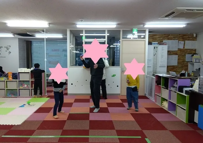 いつもは広い部屋で思い思いに遊んでいる子どもたちですが、先日は机に集まって工作をするお子さんが多い日でした😊