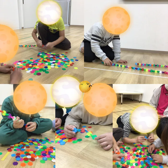 集団活動は「どれだけながくつなげられるかな❓」ゲームを行ないました👉