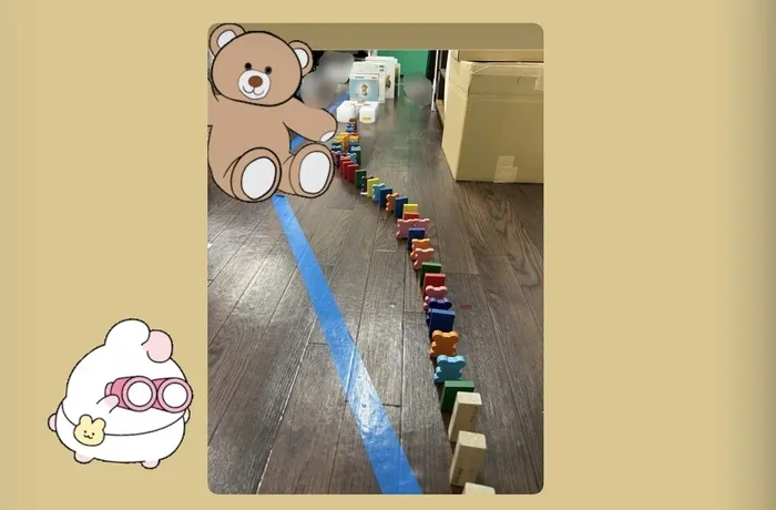 ジェンガや絵本、靴下入れ等を使ってドミノ倒しを行いました‼︎