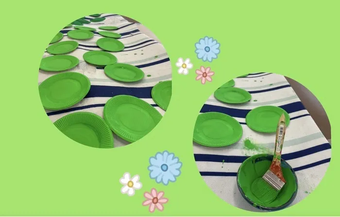 緑色に塗った紙皿です🟢