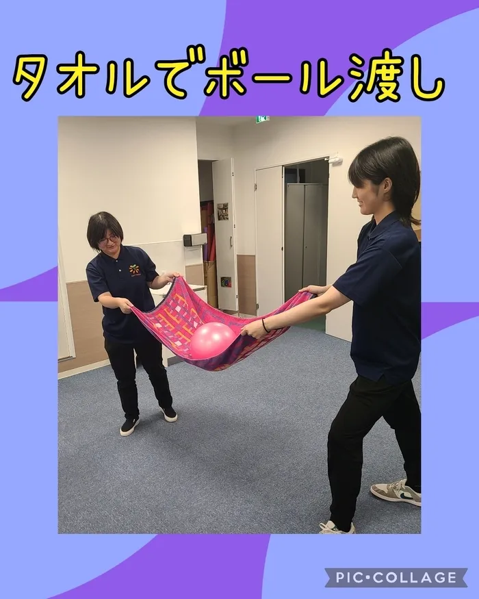 9月6日(土)は『タオルでボール渡し』というレクリエーションをおこないました⚽
