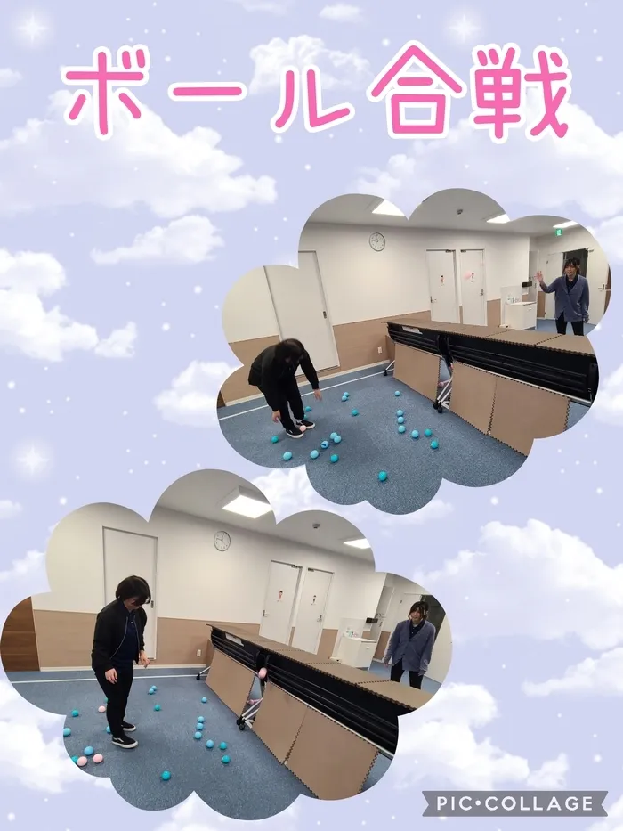 10月9日(木)は『ボール合戦』というレクリエーションをおこないました🍒